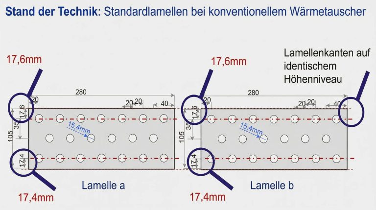 Das Patent DE 10 2012 007 570 mit dem Titel "Lamellen-Rohr-Wärmetauscher mit verbesserter Wärmeübertragung" beschreibt eine innovative Methode, die als "Lamellenversetzung" bezeichnet werden kann.