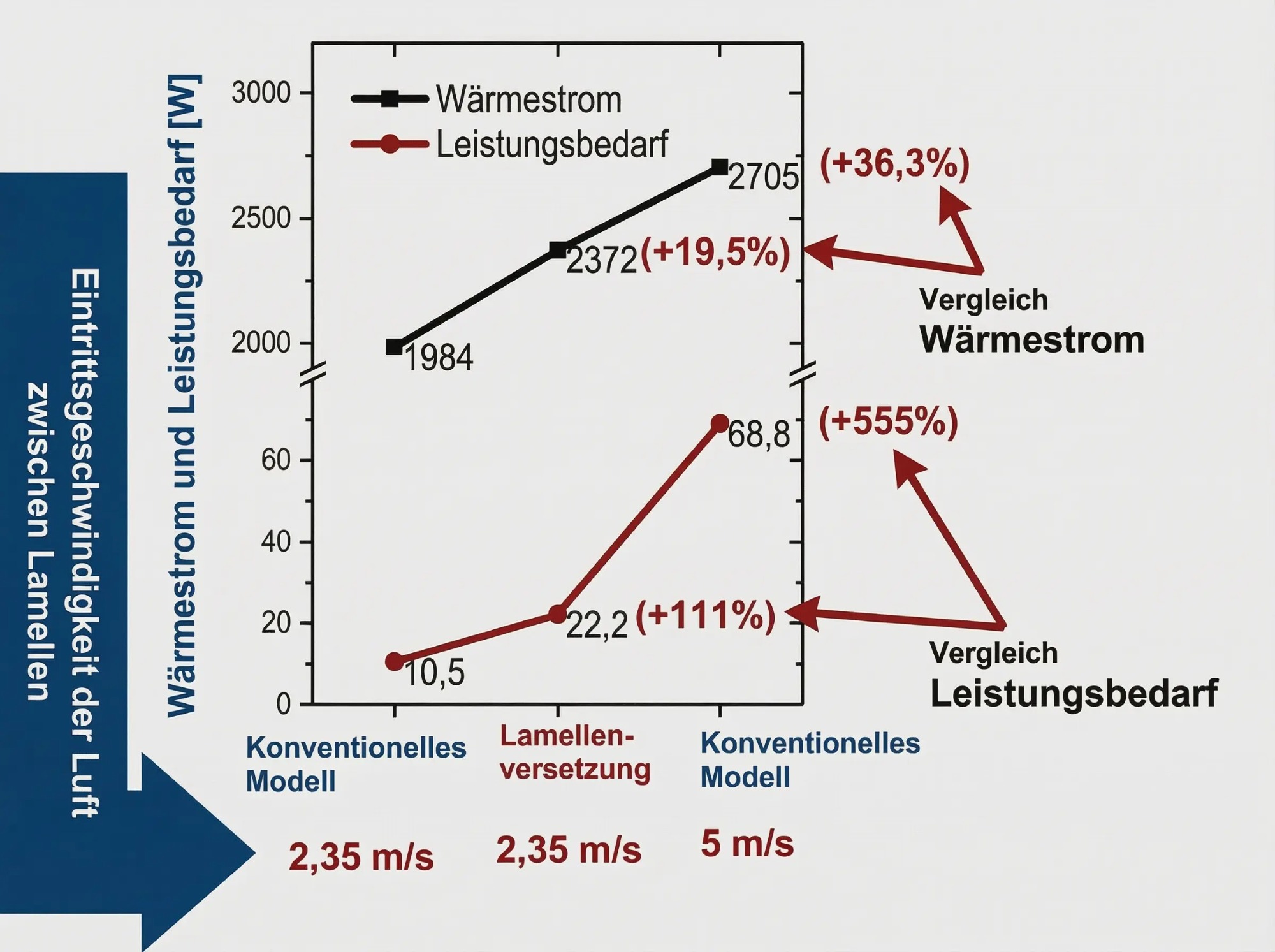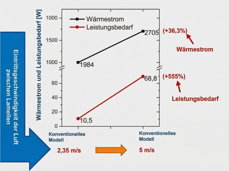 - Höherer Lüfterenergiebedarf bei Leistungssteigerung