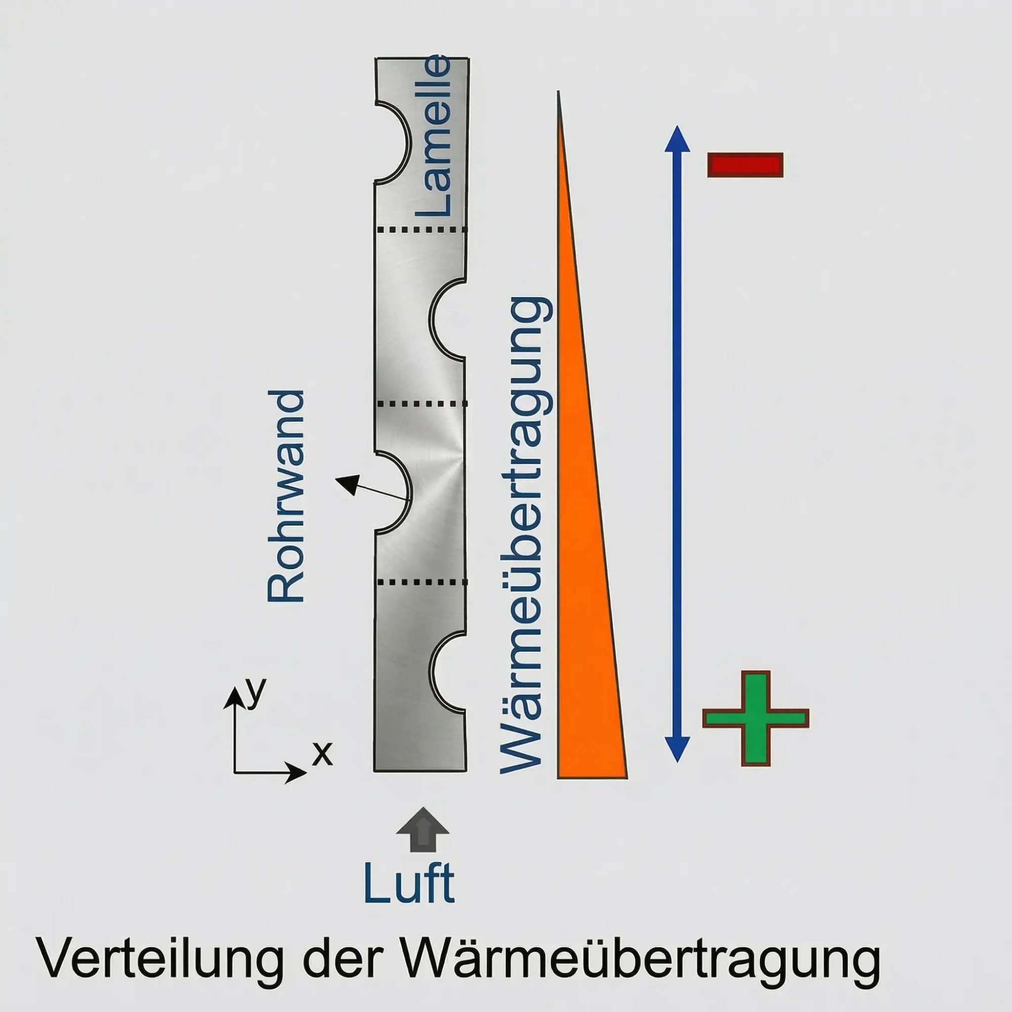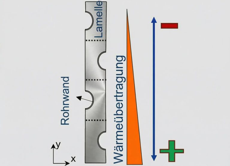 Verteilung der Wärmeübertragung auf Lamellenoberfläche