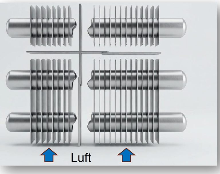 Unsere Erfindungen haben bewiesen, dass bereits eine kleine Änderung in der Anordnung von Lamellen und Rohren eine große, positive Wirkung erzielen kann.