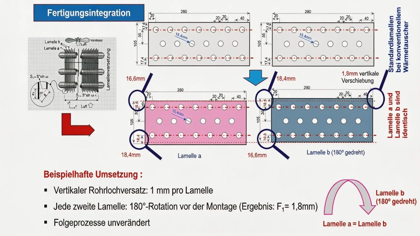 Die nach den Patenten herzustellenden Wärmetauscher sind bewusst so ausgelegt, dass sie mit bestehenden oder nur geringfügig angepassten Fertigungsprozessen realisiert werden können. Dadurch wird das technische und wirtschaftliche Risiko für Hersteller erheblich reduziert.